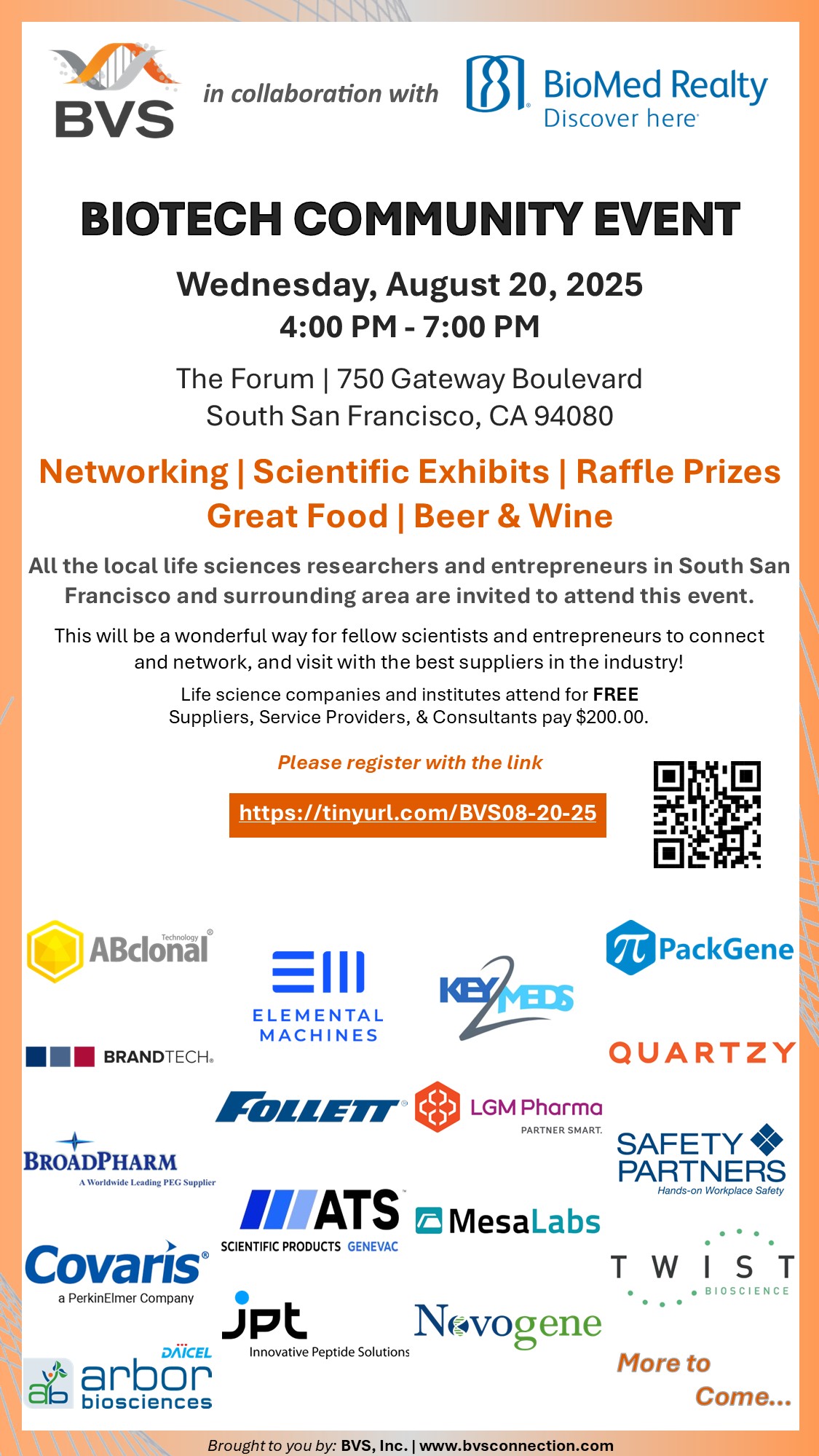 Join Us for the BVS and BioMed Realty Biotech Community Event!