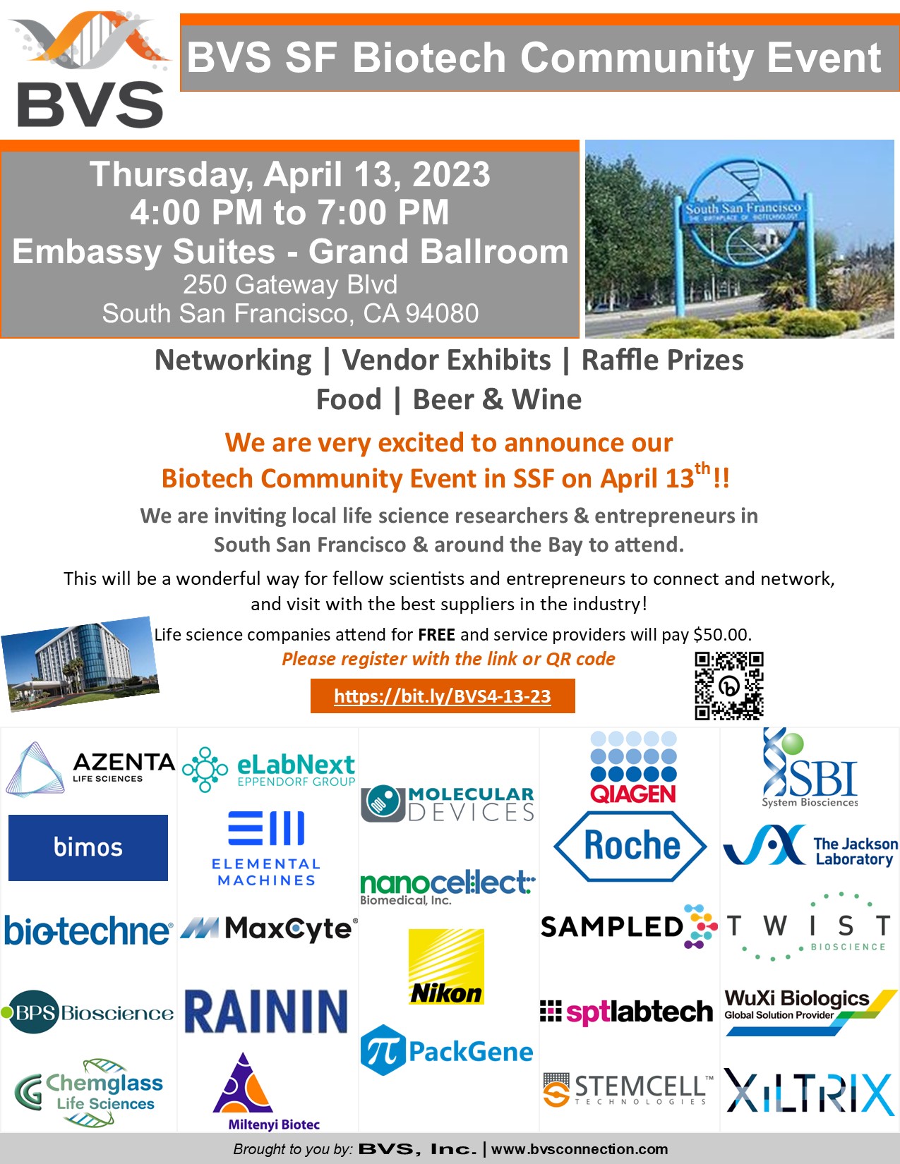 We are very excited to announce BVS’ SSF Biotech Community Event at the Embassy Suites.