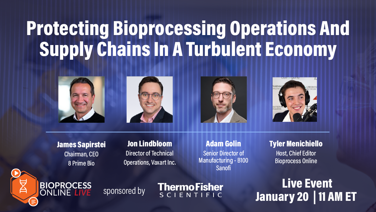 Resilience is critical in biomanufacturing, especially in an increasingly connected global ecosystem where economic shifts in one region can threaten operations everywhere. Join Bioprocess Online’s chief editor, Tyler Menichiello, for an interactive panel discussion on how companies are navigating a tight funding environment, raw material shortages, and global market pressures. The panel will feature Adam Golin, a senior director of manufacturing at Sanofi; Jon Lindbloom, the director of technical operations at Vaxart; and veteran industry leader James Sapirstein.